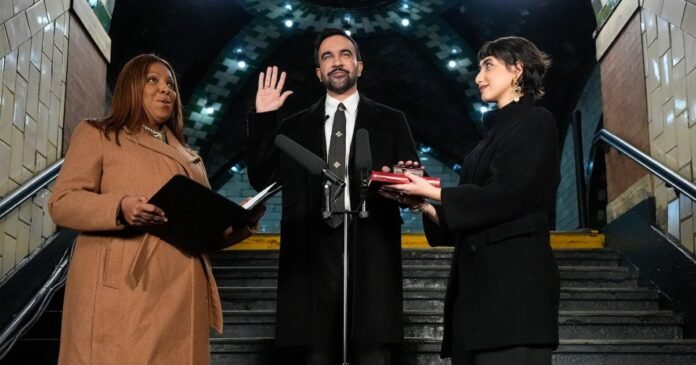 New York Attorney General Letitia James swore in Mamdani, the city’s first Muslim mayor, in a small ceremony with his family just after midnight. Supporters counted down the seconds.